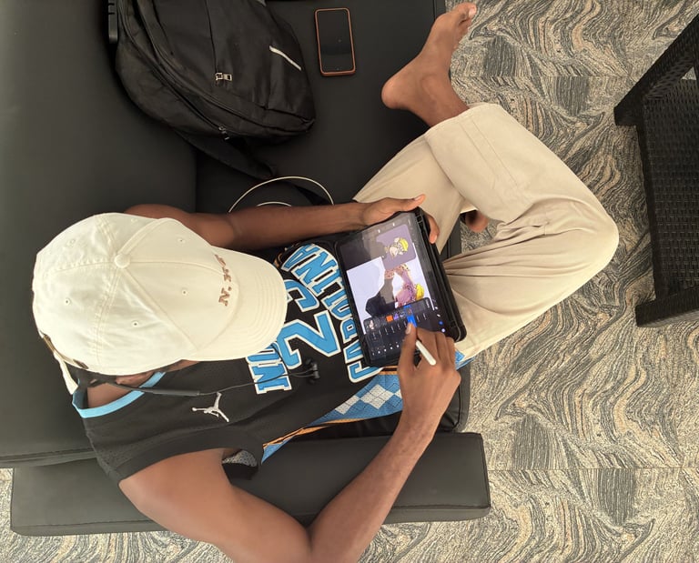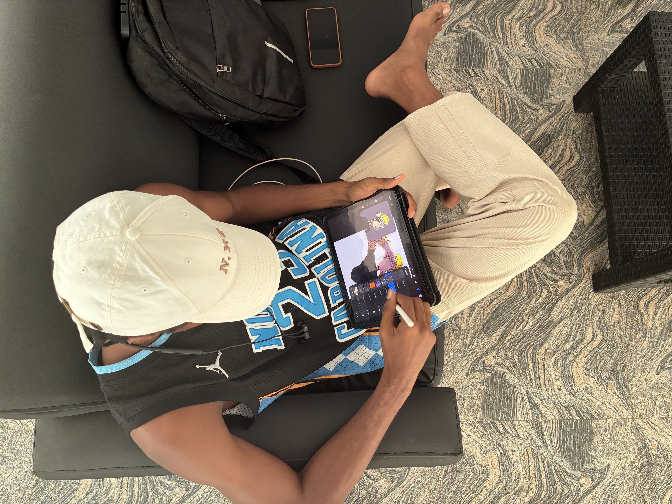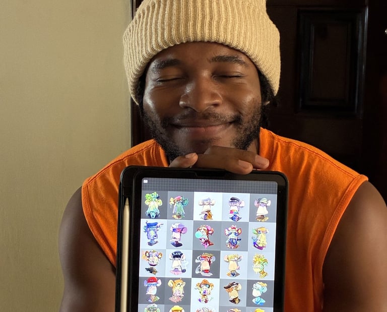 Inspired by cartoons, real-life experiences, and music, he creates stylised characters that are expressive, dynamic, and full of personality.